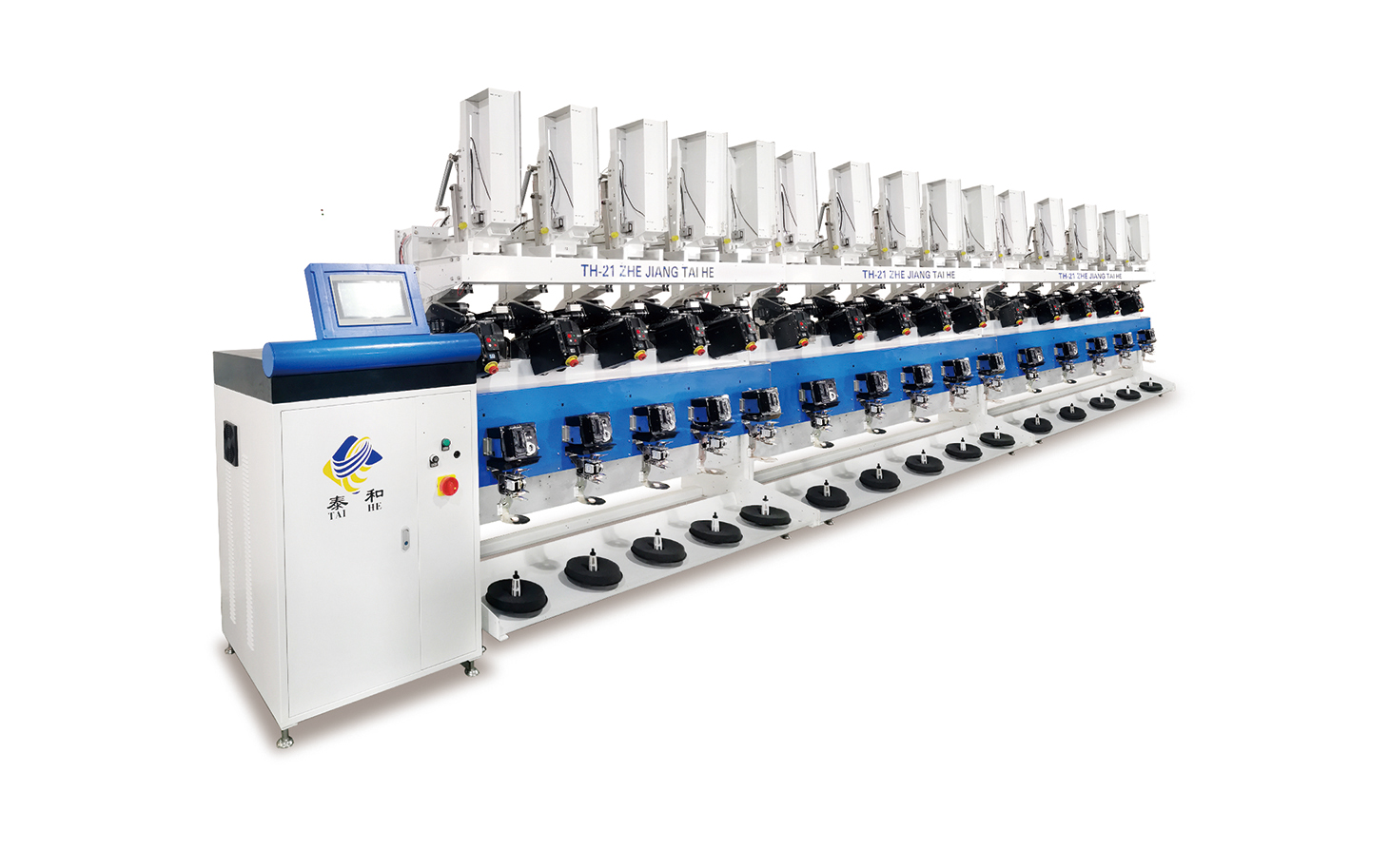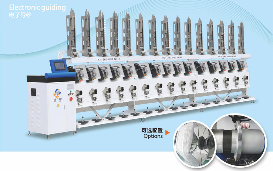 TH-21A is a fully automatic cone winding machine with automatic tube replacement. Machine efficiency is highly improved, and it also reduces labor costs considerably. Equipped with an electronically controlled tuck-in device and a constant temperature oiling system, it ensures the yarn is wound perfectly.